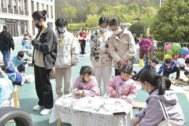 随后,师生们参与到职业体验馆和全园室内外的游戏中,大家走进幼儿游戏,感受“幼儿的社会性主要是在日常生活和游戏中通过观察和模仿潜移默化地发展起来的”这一理念在实践中的落地践行。