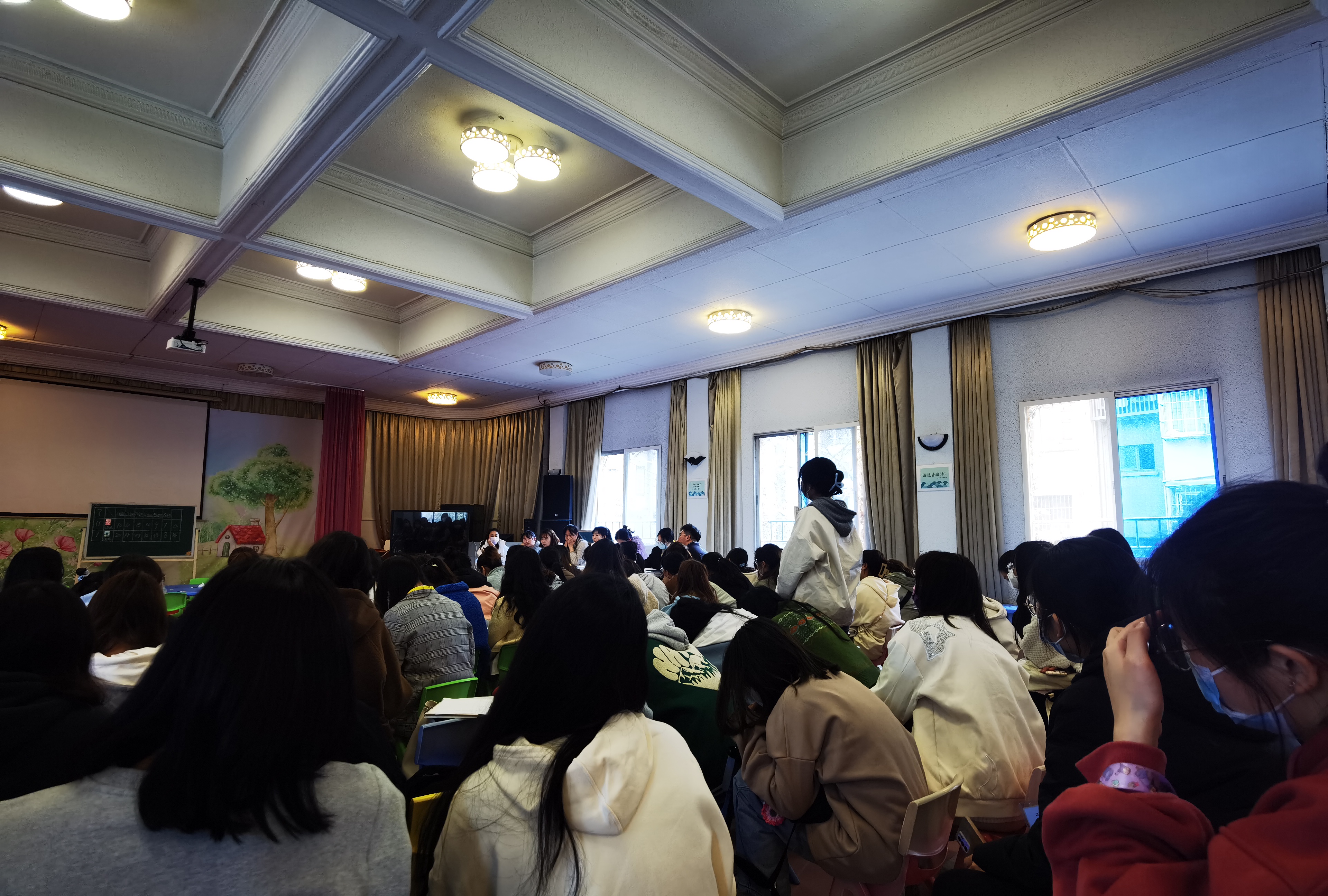 首先,河海大学幼儿园科学研究组成员刘丹老师为我院学生带来了大班科学实验探究型活动《纸巾大比拼》。随后,于晗老师带来了小班科学观察认识型活动《认识春见》。集体教学活动结束后两位老师分别从活动设计意图、活动目标、教法学法、活动过程等几个方面进行了说课。