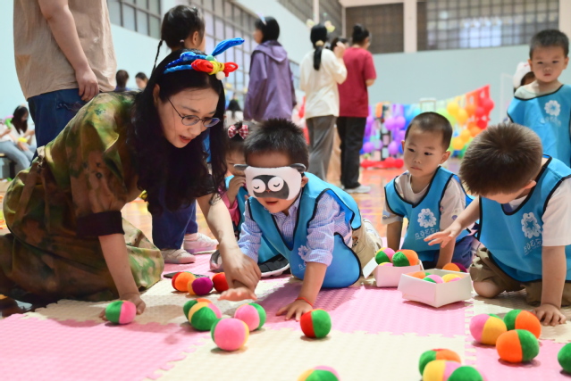 9点30分,五色花育儿园的小朋友们来到了活动现场,williamhill英国的学生用充满童趣、创意的舞蹈向小朋友们表示了热烈的欢迎,之后,游戏区大门缓缓开启,40多种游戏全面开放,21级学生带领幼儿进入游戏区域,追随幼儿的兴趣,组织、指导幼儿游戏。