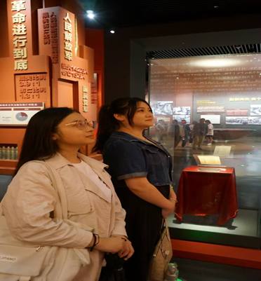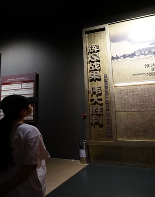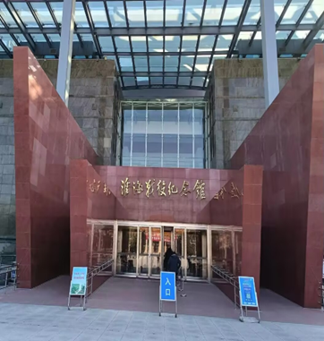 8月10日上午, 实践团的成员们怀着崇敬的心情踏入了淮海战役纪念馆,庄严肃穆的馆内陈列着许多珍贵的历史文物、照片和文献资料,生动地再现了那场波澜壮阔的战役。成员们被丰富的展品和详实的史料深深吸引,仔细聆听讲解员的介绍,深入了解了淮海战役的历史背景、战略部署、战斗过程以及人民群众对战役的巨大支持。革命先烈们坚定的信念和不屈的意志,如同一股强大的力量,激励着每一位同学。