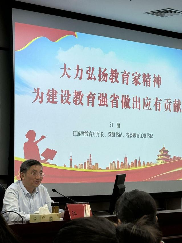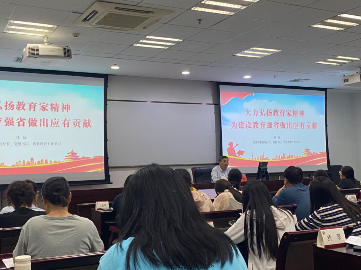 省教育厅厅长、党组书记、省委教育工委书记江涌以“大力弘扬教育家精神——为建设教育强省做出应有贡献”为题进行了报告,报告专门回顾了党的十八大以来习近平总书记在教师节对广大教师的亲切慰问和殷切期望,深刻阐释了教育家精神六个方面的丰富内涵,要求广大教师学习好、实践好、传承好教育家精神,努力推进我省在教育强国建设中走在前、做示范。省委网信办副主任胡连生教授以“新时代互联网发展与治理”为题,就习近平总书记关于网络强国重要思想的丰富内涵与成效、江苏省加强互联网治理的实践探索以及旗帜鲜明做好新时代网络意识形态工作等方面进行了专题报告。