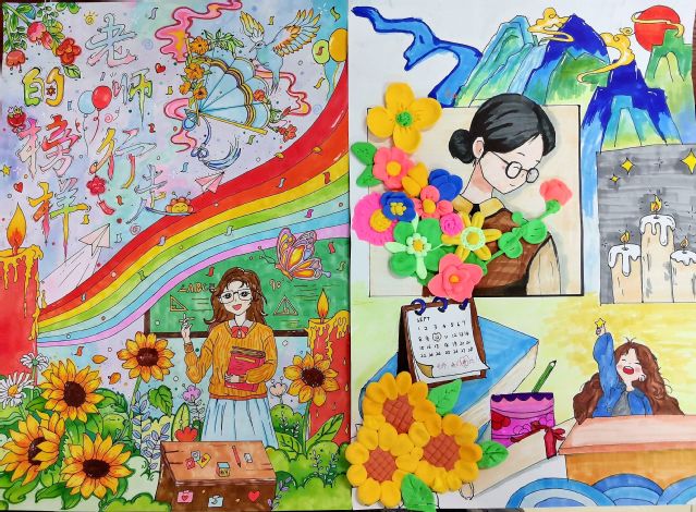 教育之道无他,唯爱与榜样。在“一丝一毫描绘心中教师榜样”项目中,同学们以绘画、手工的形式刻画出了自己心目中的教师榜样形象。其中有“点亮山里女孩的梦想”的张桂梅,有“童心母爱”的斯霞,有曾经陪伴同学走出困境的高中老师,更有多年前给予同学无条件爱的幼儿园老师……他们是同学们心中温暖的灯塔、力量的源泉。
