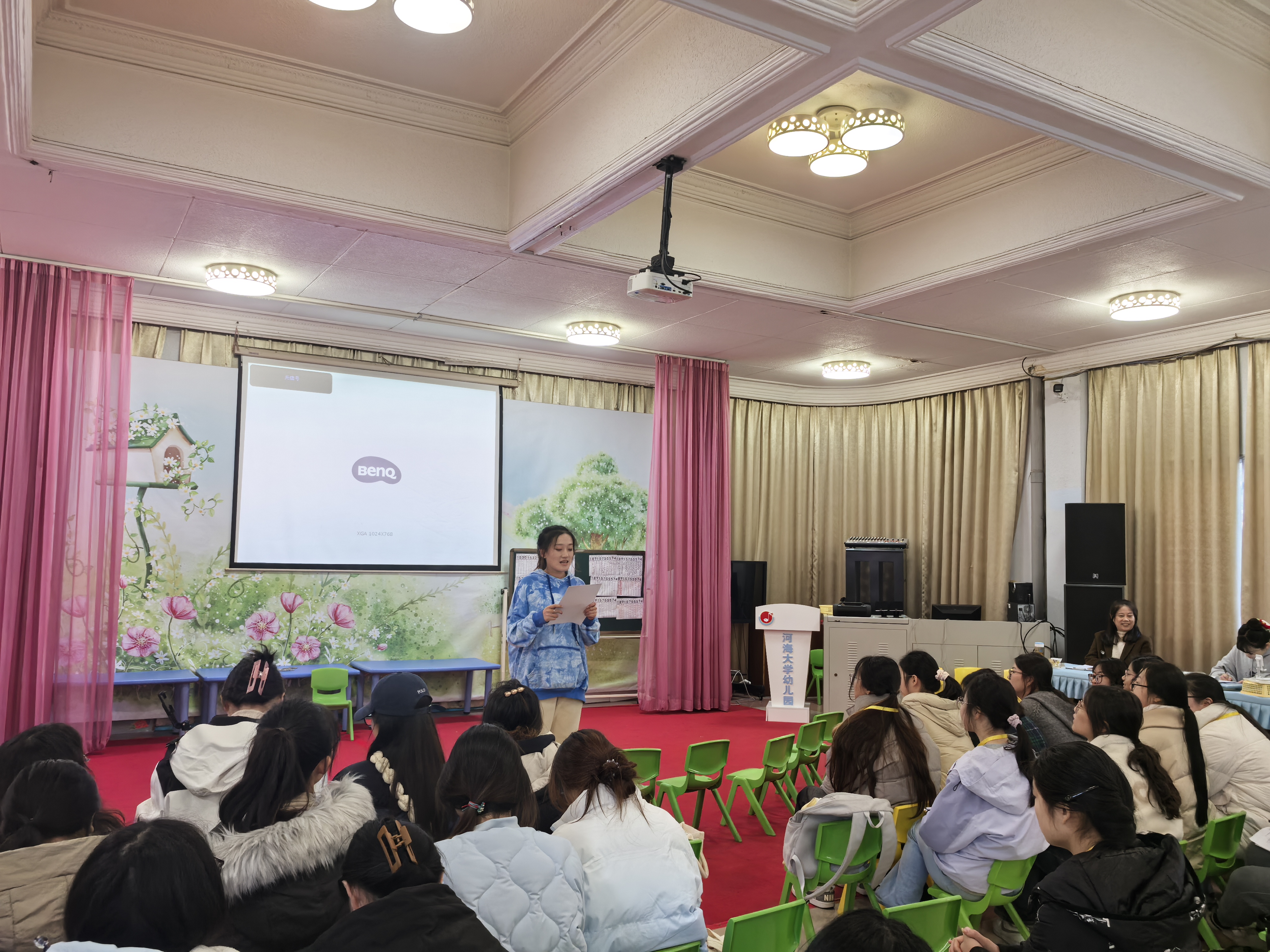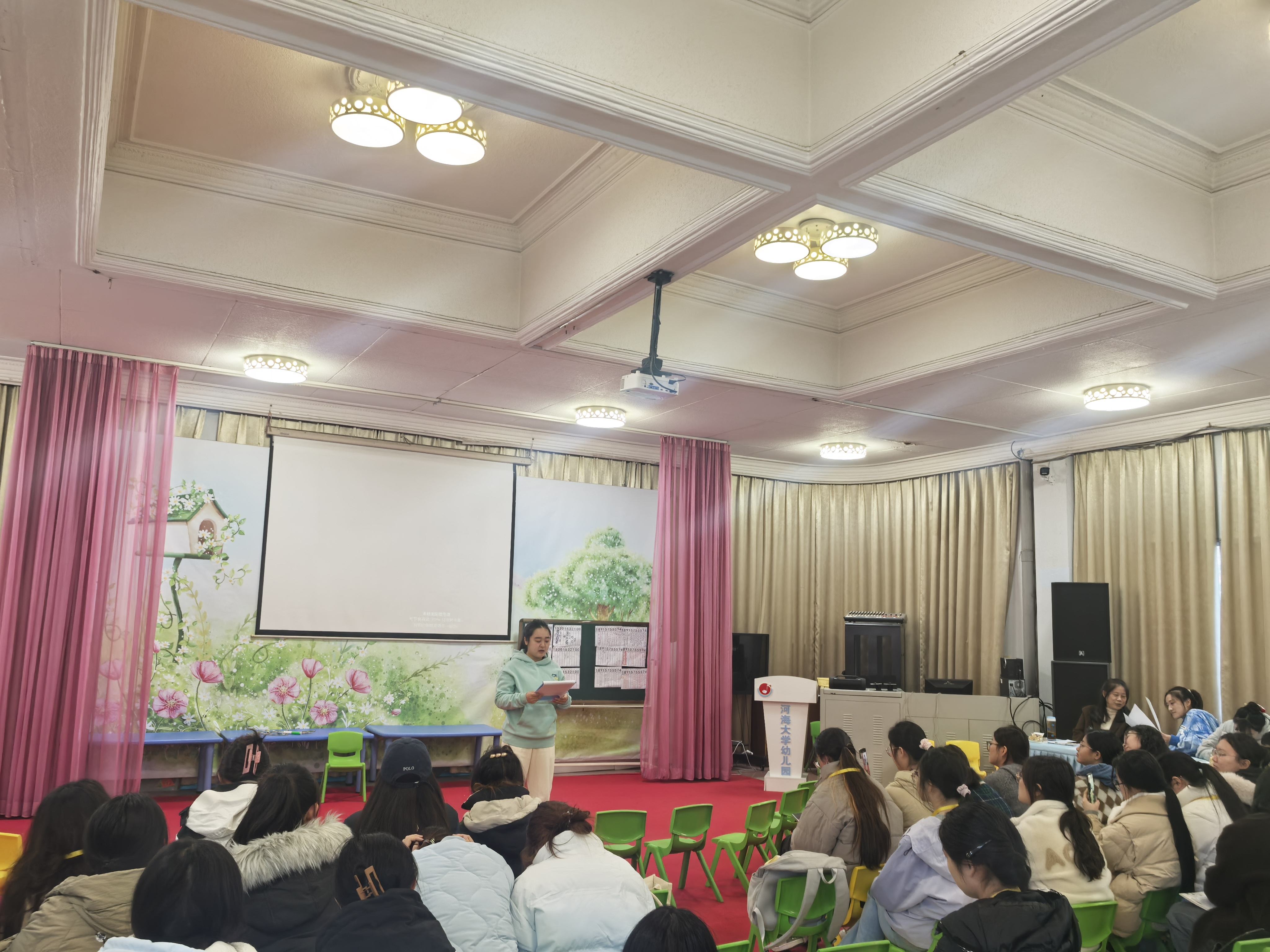 活动由河海大学幼儿园数学教研组桂静老师主持,桂老师表示本次活动主要由两部分组成,两节数学集体教学活动的观摩以及说课。