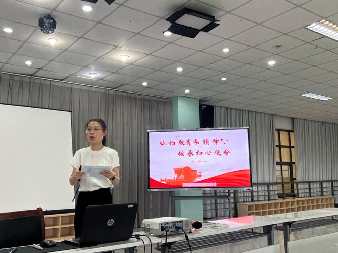 随后,全体教师共同观看了《教育家精神宣传片》第四集,光影之中感悟教育家的实践智慧。黄老师还结合影片,生动剖析纪录片中的三位教育家的躬耕实践:朱九思以“求是创新”之魄力,推动单一工科院校向综合性大学转型;高铭暄以“勤学笃行”之执着,构建中国刑法学独立教学体系;卫兴华以“笃行求是”之信念,奠基马克思主义经济学中国化研究。