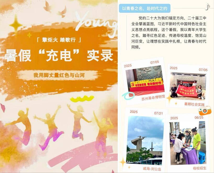 该作品以“暑假充电”为切入点,通过生动的图文搭配、流畅的交互设计,将个人假期的成长实践与祖国发展的时代画卷巧妙融合。作品中,她用细腻的笔触记录下暑期学习实践的点滴瞬间,从参与志愿服务到探访红色基地,从见证乡村振兴变迁到感受城市发展活力,每一个场景都传递出青年学子向上向善的精神风貌,也生动展现了祖国日新月异的发展成就,让观众在沉浸式体验中感受青春与时代的同频共振。