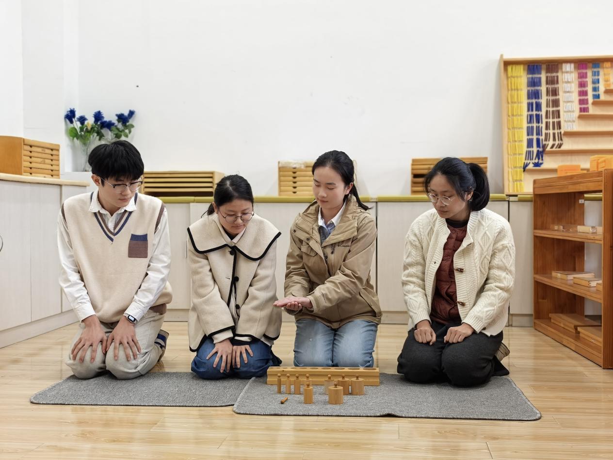 “这次演示让我真正明白了‘我听到了,我忘记了;我看见了,我记住了;我操作了,我理解了’这句话的含义。”一位同学分享道,“当我们蹲下来,与‘孩子’平视,带领他们操作时,才真切感受到蒙台梭利博士所说的‘尊重儿童’的重量。”