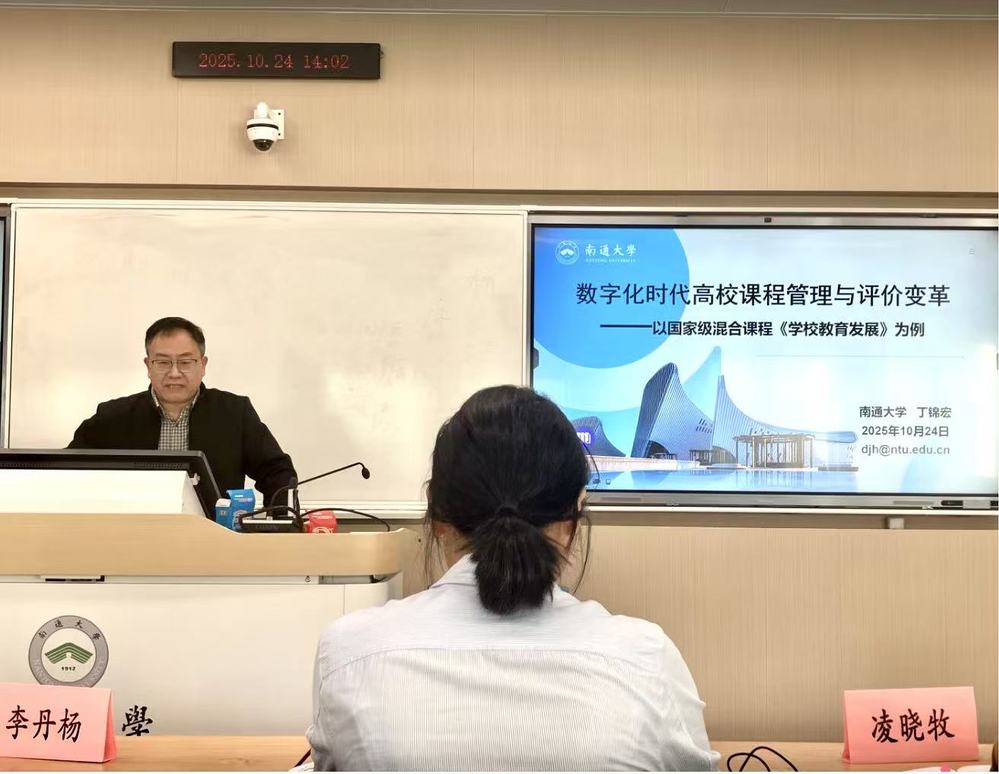 本次培训以“提升数字化素养与能力,助力课程创新性改革”为核心目标,为期三天的日程安排紧凑、内容详实。培训首日,江苏省教育厅二级调研员郭新宇对《人工智能赋能教育高质量发展行动方案(2025-2027年)》进行了权威解读,为培训奠定了政策理论基础。随后,南通大学副校长施伦作了开班动员。下午的课程聚焦“课程管理与评价方式的改革”以及“数智时代高校课程改革与创新”,由南通大学教育研究院院长丁锦宏和副校长徐骏分别主讲,深入探讨了数字化在教学管理中的应用与课程创新的前沿趋势。