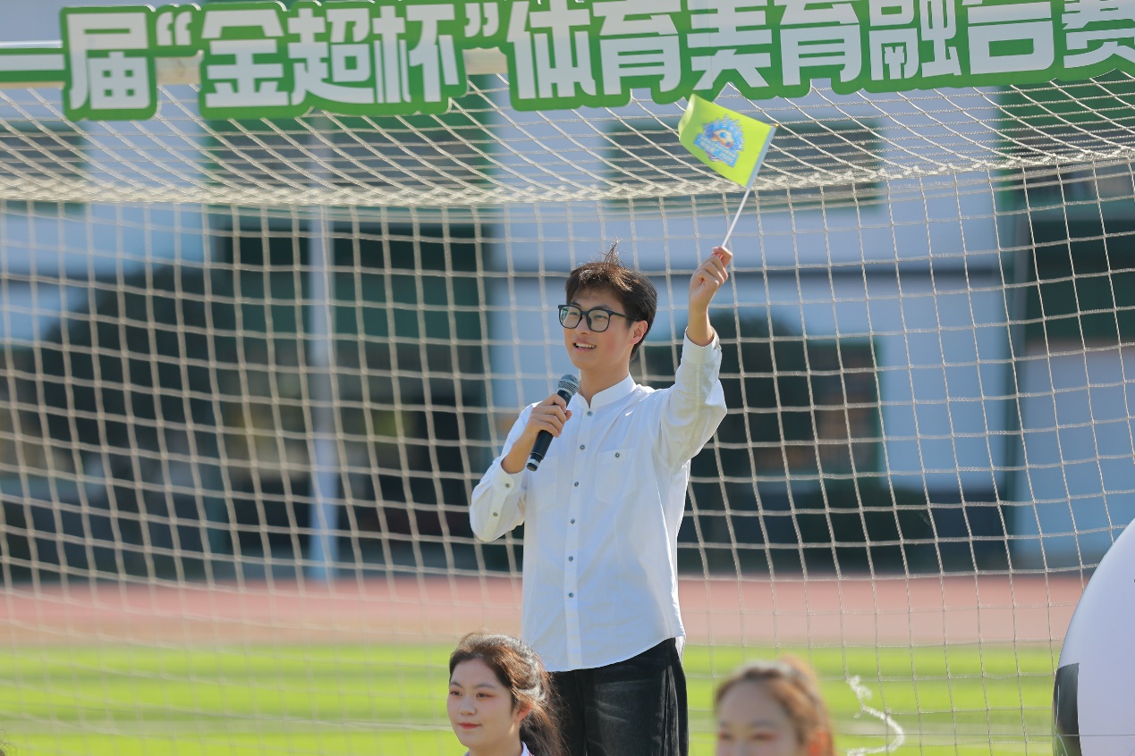 在开场环节,同学们倾情演绎了本届赛事主题曲《金超交响》。大家以饱满的热情,将体育精神与艺术之美完美融合。朝气的歌声配合精心设计的队形变换,瞬间点燃了全场气氛,展现了金审学子昂扬向上的精神风貌。