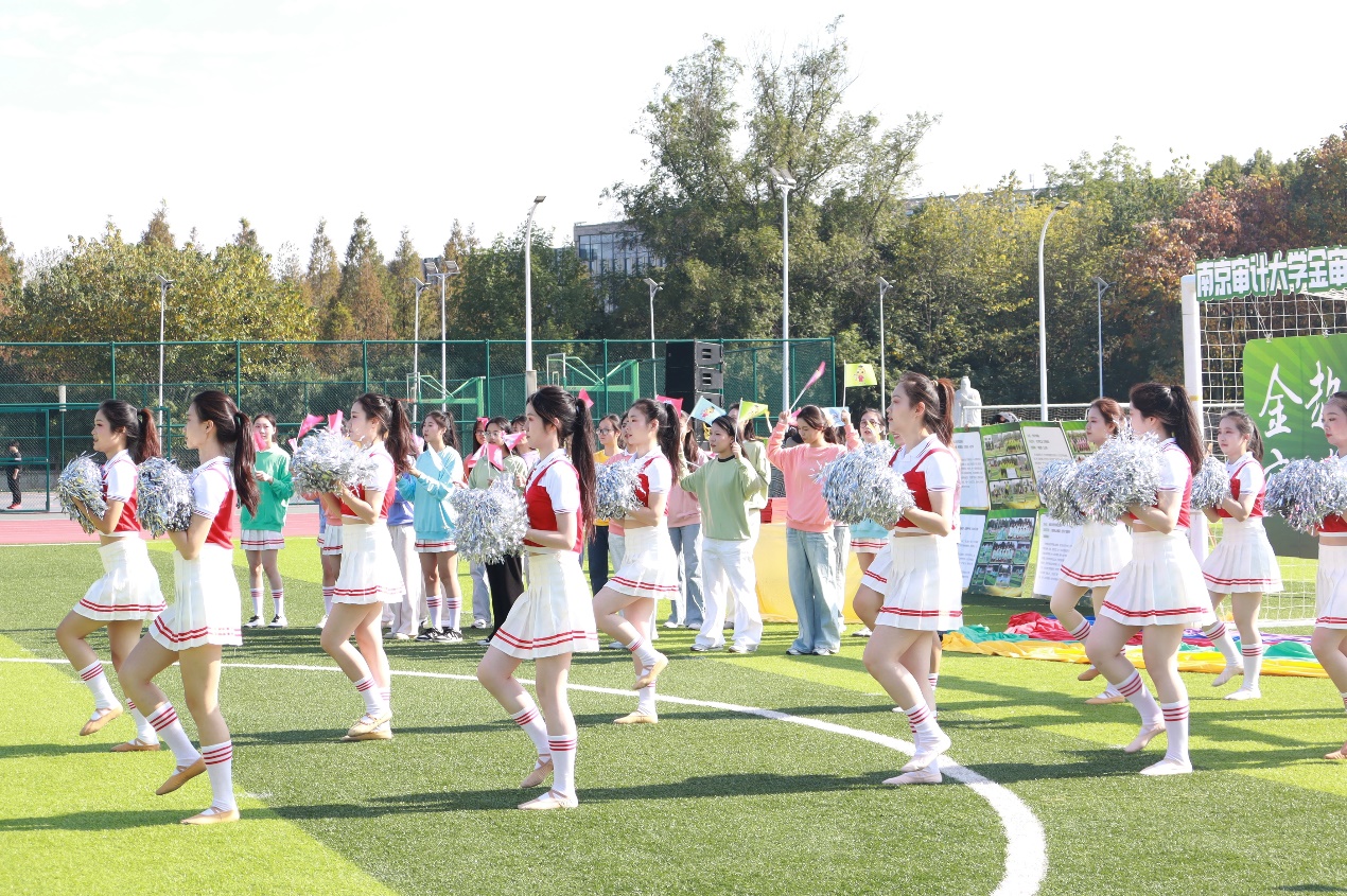 金融学院队与会计学院队巅峰对决中场休息间,伴随着动感的节奏,同学以整齐划一的动作、富有创意的队形设计和极具感染力的笑容,完美诠释了青春的热情与活力。这支精心编排的啦啦操不仅展现了同学们扎实的艺术素养,更体现了同学们团结协作、追求卓越的风貌。