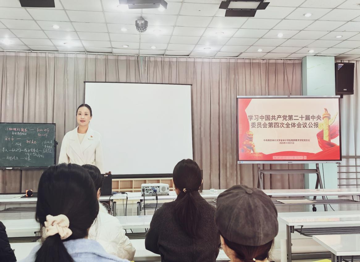 会议聚焦《公报》原文,坚持读原著、学原文、悟原理。在学院党总支书记鲍文娟的领学下,全体与会党员沉心静气、原原本本、逐字逐句研读了《公报》全文。通过这种系统深入、原汁原味的学习方式,大家力求精准把握《公报》的深刻内涵与精神实质,深刻领会全会提出的一系列新思想、新论断、新要求,确保对全会的目标任务与实践要求做到学懂弄通、入脑入心。