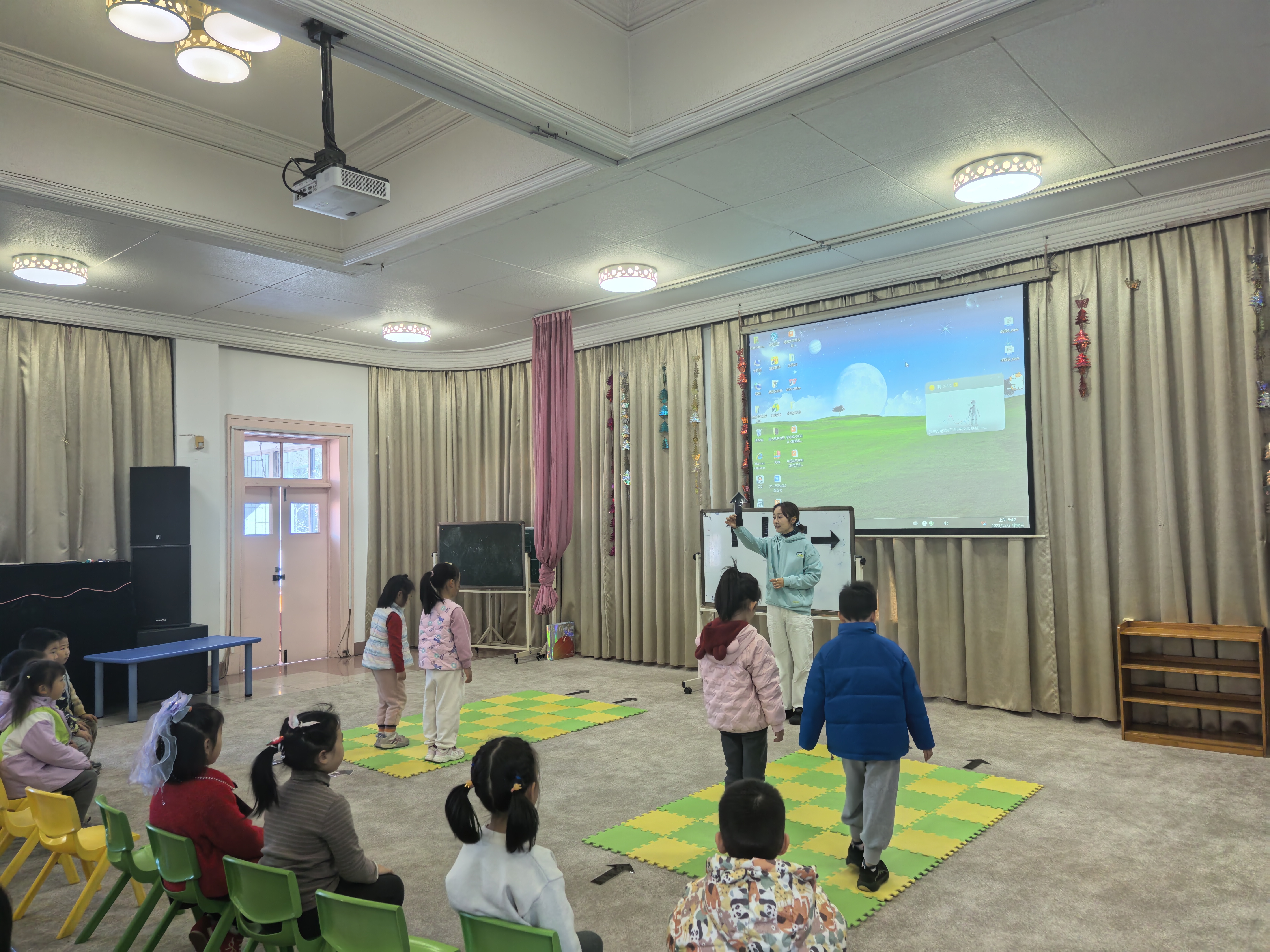 罗咏璇老师组织的大班活动《智闯地雷阵》,将空间方位学习置于军事游戏情境中。幼儿在“观察地图—指令训练—分组排雷”的层层递进中,理解箭头符号与方位指令,并尝试用语言描述行动路径,从游戏中感受了数学的重要性与有趣性。