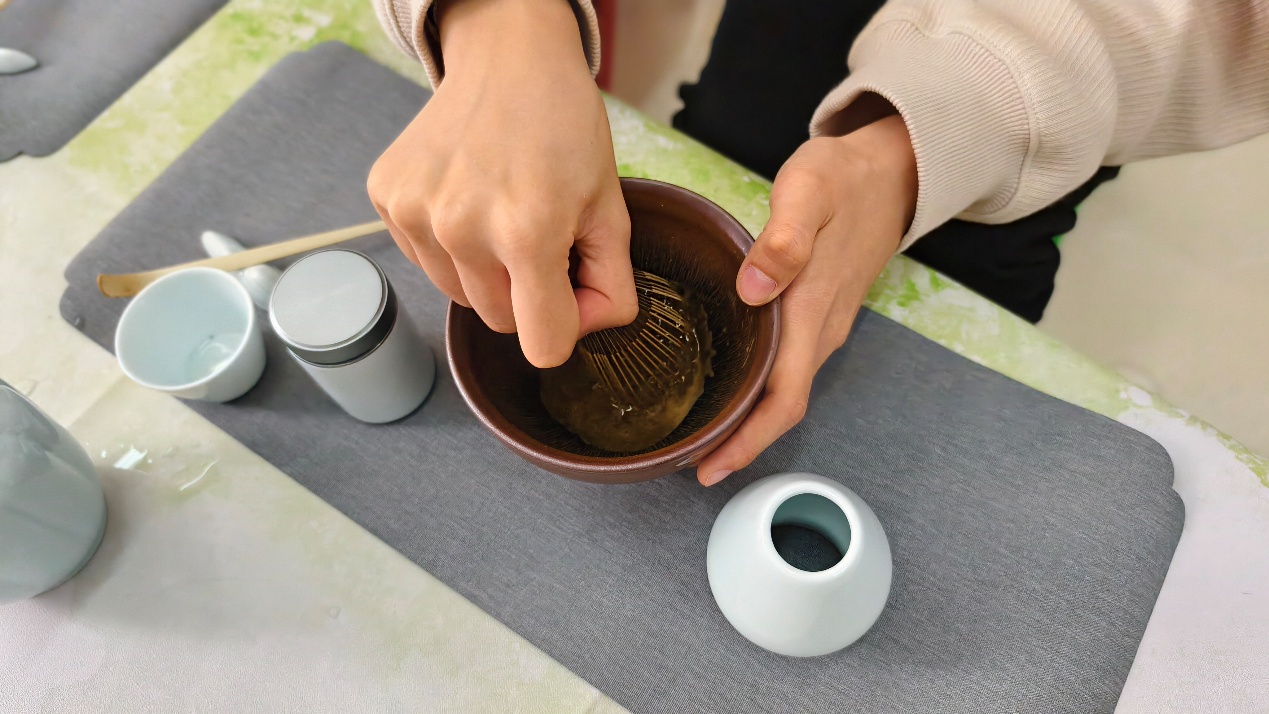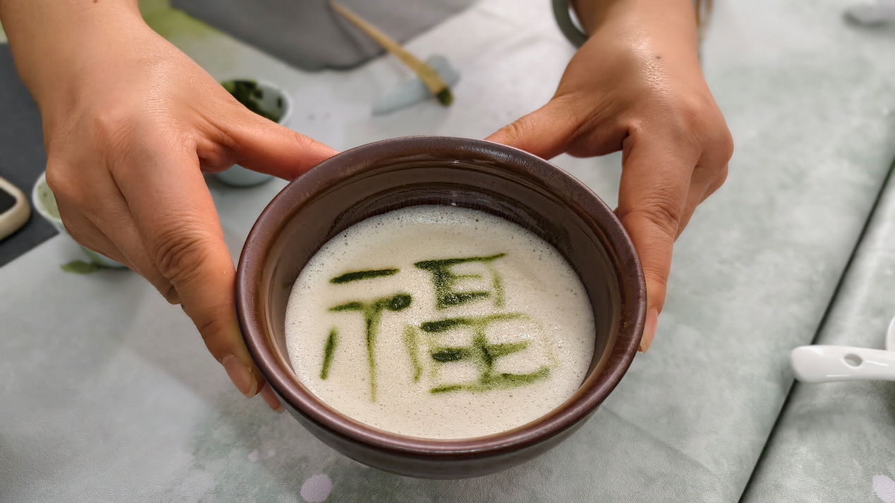 “这太神奇了,就像在柔软的雪地上作画。它要求极高的专注和控制力,当‘福’字在茶沫上清晰显现的那一刻,我仿佛触摸到了宋代文人那种精致而富有诗意的精神世界。”参与活动的2022级学生孔越分享道。